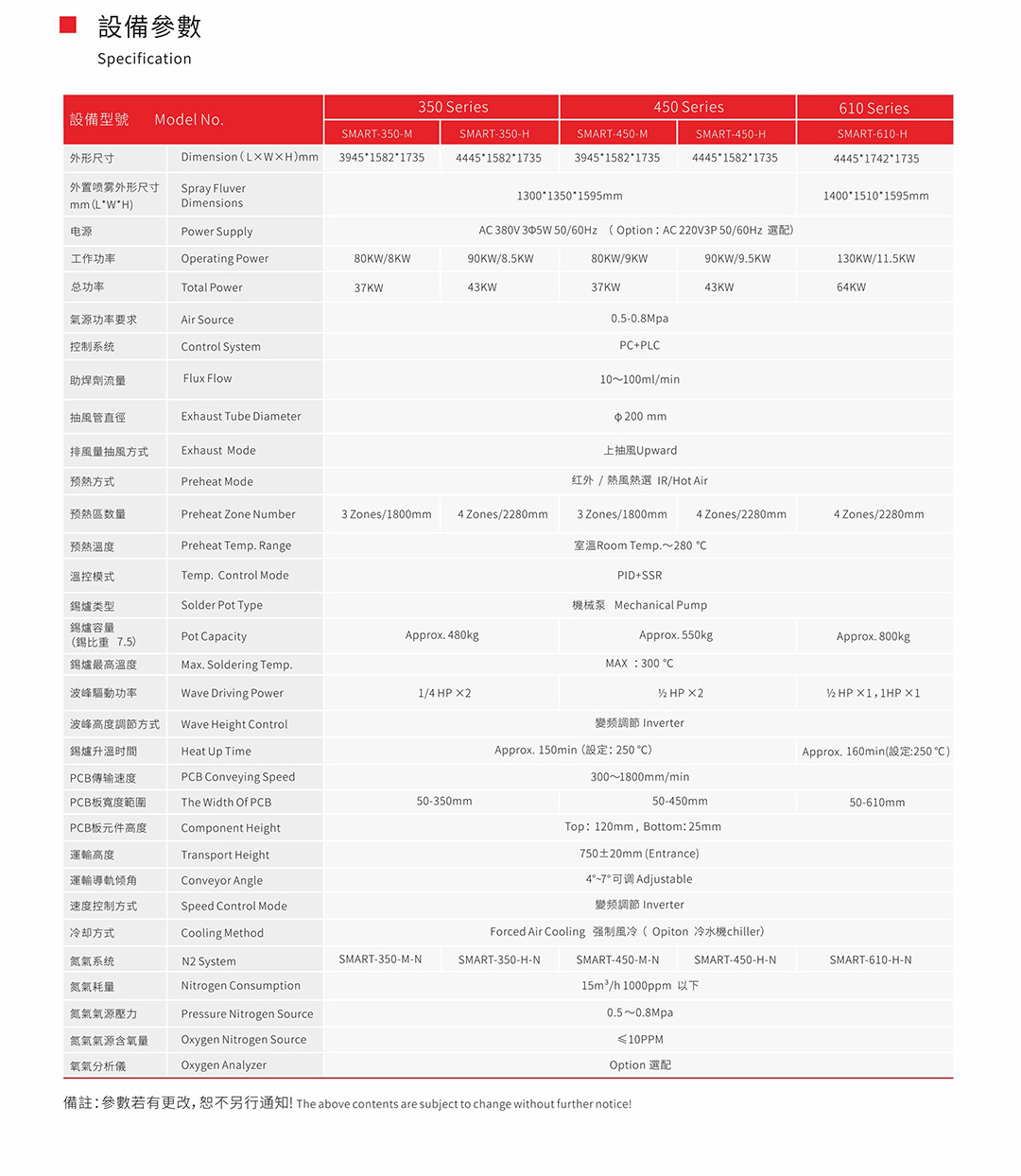 噴霧外置結合內置和獨立兩種噴霧方式的優點,可以一體控制將噴霧遠離預熱區,杜絕禍患。爐體內部免受助焊劑干擾,電箱安全清潔。為四段預熱節省空間的同時減少前段接駁臺的使用。外置噴霧導軌角度可調,代替入口接駁功能。熱風預熱改裝U型發熱管,使用壽命長內部強化隔熱加上可選外部保溫措施,有效降低熱損耗。設備表面溫度…